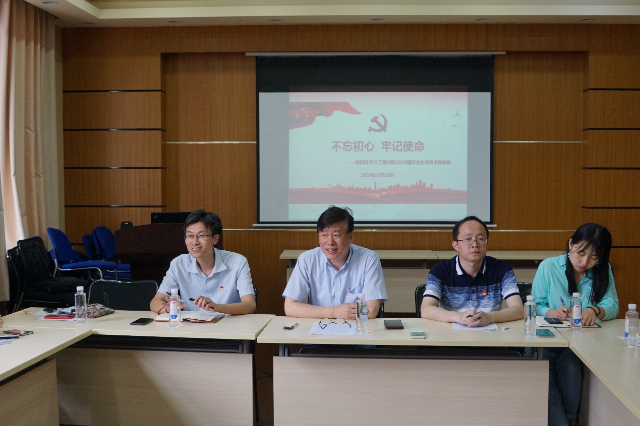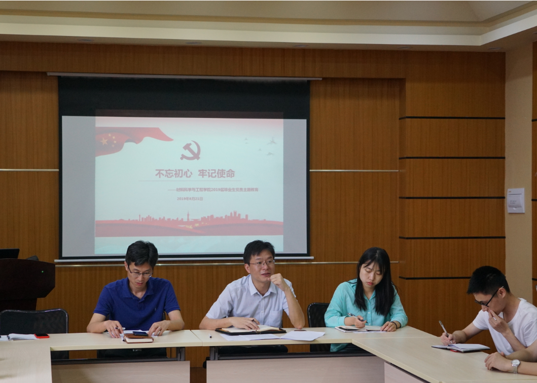 党委书记唐颂超以“不忘初心、牢记使命”为主题给2019届本科毕业生党员上离校前最后一次专题党课,学院党委副书记戴诚安主持活动,毕业班辅导员参加。