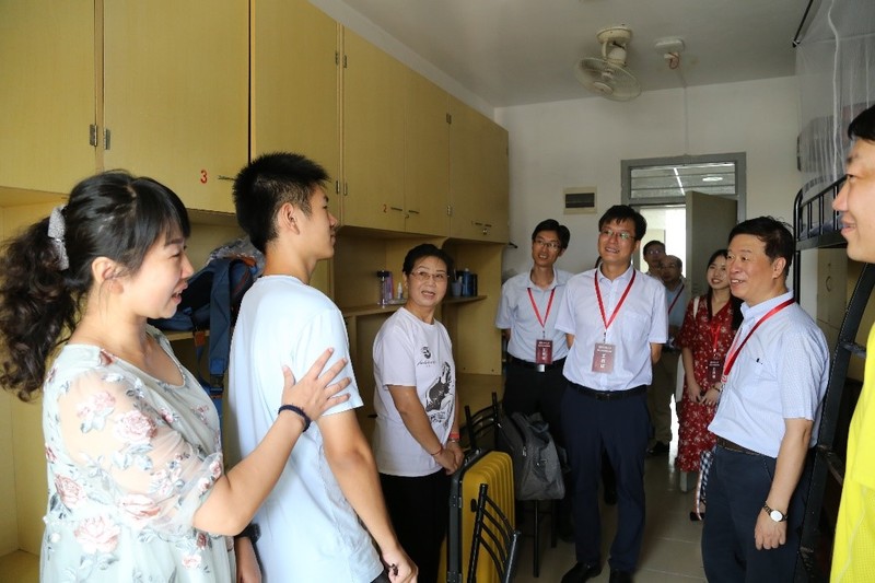 上午,党委书记唐颂超,副院长(主持工作)林绍梁,副书记戴诚安,副院长李欣欣,等一行人来到迎新现场,与师生交流,随后一行人走访了新生宿舍,了解新生情况,勉励新生勤奋学习,尽快适应大学生活。同时,学院班导师、辅导员、督导们与新生和家长进行面对面交流,答疑解惑。
