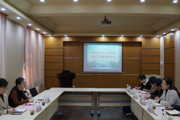 党委书记袁媛、院长林绍梁、党委副书记李欣欣、党委副书记戴诚安、高分子材料系主任周权、学院教师曾惠丹、柳翠及学院校友会秘书参加座谈。会议由袁媛主持。