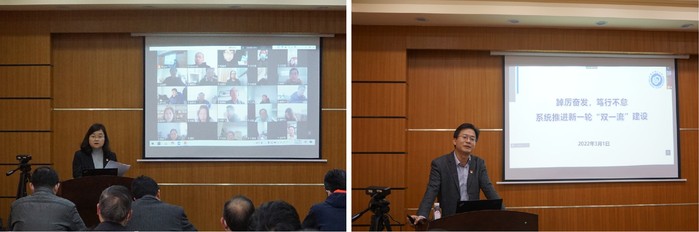 院长、党委副书记林绍梁作“踔厉奋发、笃行不怠,系统推进新一轮‘双一流’建设”主题报告,从构建新发展阶段学科新布局和国家战略科技力量、适应新经济特征的创新型人才培养模式与定位、三区一校产教融合大平台、迎接70周年校庆等方面介绍2022年学校重点工作方向;从一流党建引领一流学科建设、材料学科转型升级、国家重点实验室筹建、师资队伍、教育教学体系建设、先进材料大楼基建、校庆活动等方面介绍了2022年学院重点工作。