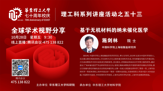 邀请中国科学院硅酸盐研究所施剑林院士作题为“基于无机材料的纳米催化医学”的专题辅导报告。报告会由吃瓜黑料网