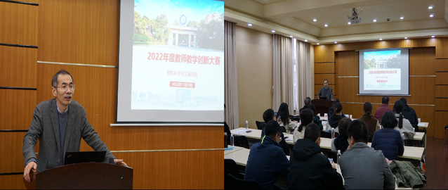在实验一楼第一会议室,举行2022年度教师教学创新大赛。大赛吸引了14位教师参与,材料学院党委书记袁媛出席活动,比赛由副院长顾金楼主持。