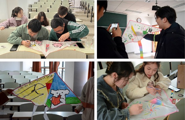 活动当天,同学们先在教室自由分组进行空白风筝的DIY,大家积极交流,思想碰撞,创作独一无二的作品。创作完成后同学们去到通海湖畔草坪,在大自然的画廊梦谷里,轻轻挽起春的流韵,与同伴一起放飞手中的纸鸢,为繁忙的研究生生活留下一份美好的回忆。