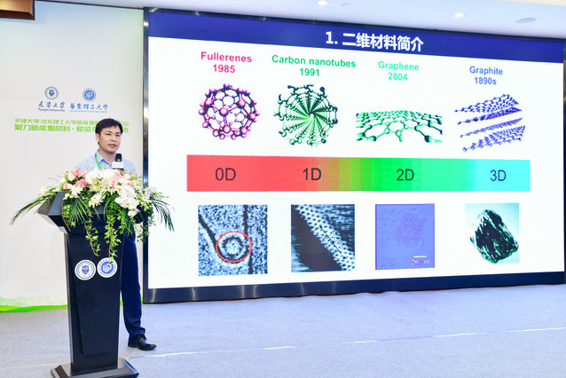 天津大学化工学院副院长范晓彬教授以“二维材料与低碳发展:机遇与挑战”为题,介绍了二维材料石墨烯及其在低碳领域中的应用,主要涵盖在二次电池、电热产品、防腐涂层、绿色建筑、导热散热和润滑油等方面,分析了在低成本宏观制备及其分散性等方面的难题和挑战。