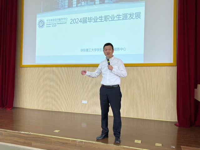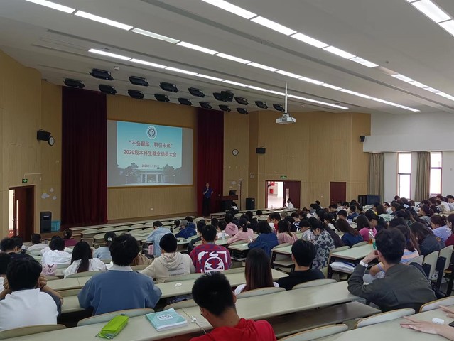 在奉贤校区召开“不负韶华,职引未来”2024届毕业生就业动员大会。党委学生工作部(处)副部(处)长、学生就业指导服务中心主任郑东,学院党委副书记戴诚安,辅导员以及2024届本科毕业生参加本次大会。