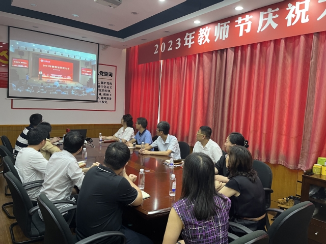 组织教师观看主题为“躬耕教坛,强国有我”学校教师节庆祝大会直播,学院党政领导班子成员、新进教职工、辅导员、教职工代表在实验一楼第二会议室参加会议。