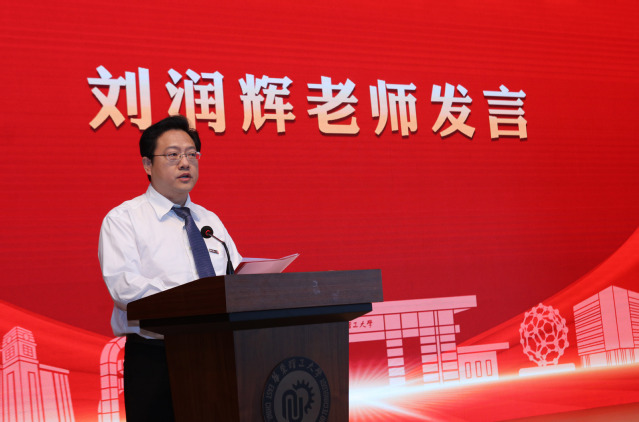 我院刘润辉教授作为优秀教师代表在会上作了主题发言,他结合自己的学习、工作经历,讲述了对实现科教兴国战略、人才兴国战略、创新驱动发展战略有效联动的感悟体会,一要牢记教书育人的神圣天职,做好教师要有理想信念、道德情操、扎实学识以及仁爱之心;二要加强基础科研和应用转化,加快科技自立自强的步伐;三要自主培养青年研究人员,强化国家战略科技力量。