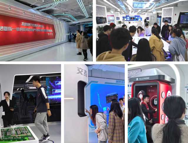 走进上海城市数字化转型体验馆序厅,首先映入眼帘的是习近平总书记关于数字经济的重要讲话——“发展数字经济意义重大,是把握新一轮科技革命和产业变革新机遇的战略选择”,充分肯定了数字经济是科技创新的重要前沿,是世界经济发展的重要方向。体验馆依次呈现了在经济、生活、治理三大领域数字化转型的标杆场景、现状进展和未来设想。在这里,师生见到了首艘国产大型邮轮“爱达·魔都号”的船舶模型,体验了充满趣味性的“交互新终端”、“智能写诗”等,找到了与自己所从事科研相关的数字化“智慧”应用,高科技产品及创意让师生惊叹不已。体验馆铺盖了上海各行各业的数字化转型典型场景,联动起熟悉的便捷化生活场景,将一个数字化城市浓缩于方寸之间,让上海全面推进城市数字化转型之路的“创新之力”“惠民之策”和“智慧之治”变得具体可见可感,让师生感受到上海近年来在经济数字化转型领域所取得的重大成就,真切体会到科技创新赋能社会高质量发展。