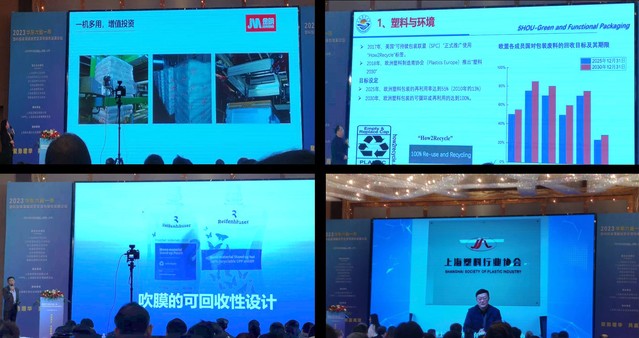 下午,来自洛阳绿之汇塑料降解科技、上海市质量监督检验技术研究院、中国石化仪征化纤、科莱恩化工科技、浙江华宝油墨、上海朗亿功能材料、国家高分子材料质检中心/安徽省功能高分子材料分析研究有限公司、上海塑料行业协会和广东金明精机等多家塑料薄膜产业链企业负责人就薄膜的绿色包装、吹塑设备、功能性开发和可持续应用发表独特见解,携手合作,共同致力于实现碳达峰。