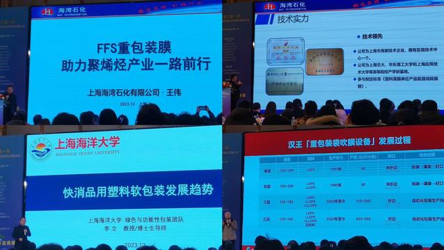来自上海海湾石化、汉王机械股份有限公司、上海海洋大学、中国石化化工、福建技术师范学院、南京三信塑胶装备等多个公司与高校的行业专家及学者分别就FFS重包装膜,快消品用塑料,TPVA,PVC与PE保鲜膜,CPP、CPE膜等各种材料作具体的说明和讲解,从各角度如制备机器、市场占比、性能对比、行业应用、常见问题及解决方案等进行深入阐释。