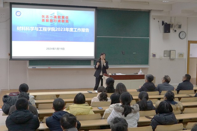 学院党委书记袁媛代表学院作“矢志一流担重任 勇毅前行谱新篇”的工作报告和财务报告。从党建工作、学科建设、科学研究、师资队伍、教育教学、安全工作、先进材料大楼等方面回顾了2023年学院工作开展情况和取得的成果,介绍了2024年学院重点工作,剖析学院面临的难点堵点问题以及新形势下学院发展的新机遇。