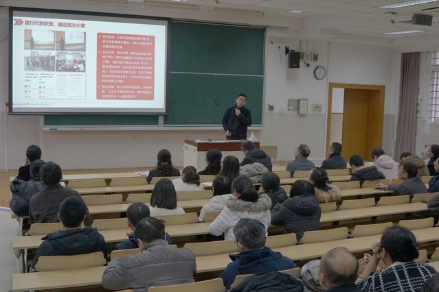 学院工会主席陈涛作2023年学院工会工作报告、财务报告。从民主、奋进、团结、温馨、活力、守正、模范七个方面介绍了学院2023年工会小家建设的相关工作和成果。他指出,2024年学院工会将进一步学习贯彻党的二十大精神,学习贯彻中国工会十八大精神,持续推动党工共建,提升学院凝聚力,强化品牌特色活动建设,深化服务功能,奋力争先创优。