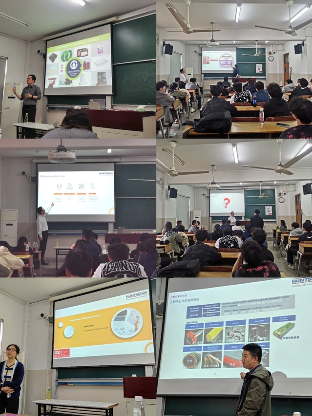 2018届博士毕业生王伟校友为师弟师妹分享了他们在学校的读博生涯、个人工作经历以及学习工作体会,热情邀请师弟师妹加入亨斯迈团队,鼓励师弟师妹积极到公司了解行业现状,找到合适的就业发展方向。