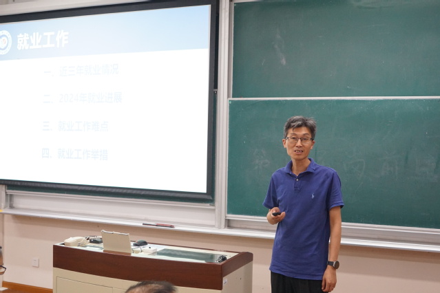 学院党委副书记戴诚安介绍了近三年本科生和研究生的就业状况,重点汇报了2024年的就业进展,从不同角度剖析了目前就业难点、堵点以及学院后续将采取的针对性举措。