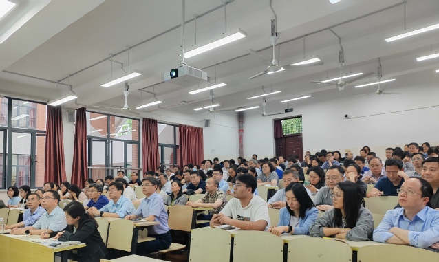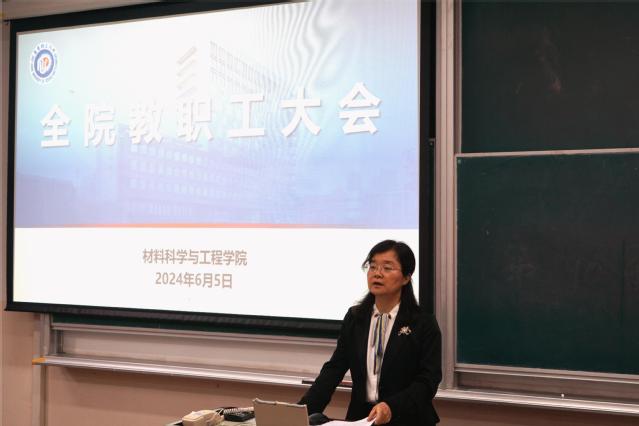 院长杜建忠汇报了学科建设情况、重点建设方向、科研经费等总体概况,从人才培养质量、师资队伍平台、科学研究水平、社会服务声誉等一级指标和思政教育、培养过程、平台资源、科研项目、科研成果与转化等二级指标进行全面对标分析。从全重室筹建、教育部重点实验室建设、电子信息材料新专业建设、国际交流与合作、先进材料大楼建设等方面介绍了本学期的工作重点。他提出,要以面向世界科技前沿、面向经济主战场、面向国家重大需求、面向人民生命健康“四个面向”为指引,深入实施学校“两新两大”战略。他期待全院教职工同心协力,团结奋斗,推动学院中心工作再上新台阶。
