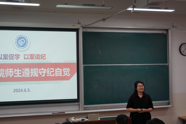 袁媛在主持讲话中指出,党纪学习教育是近期重点工作之一,后续学院将把开展党纪学习教育同落实上级重大决策部署、推动学院工作有机结合,一体谋划、一体推进。当前学院正处于创新发展的攻坚期,新形势下,学院发展既有新挑战、更有新机遇,在这个关键时期,希望全院教职工凝聚发展合力,整合资源平台,锐意进取,一起推动学院事业高质量发展。