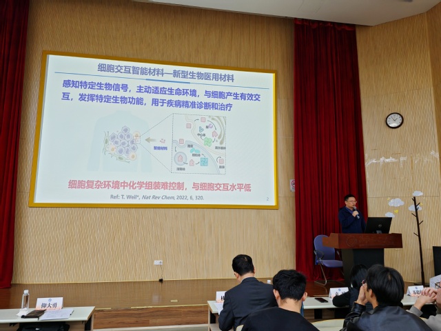 仰大勇以自己科研之路为例,介绍了科研快乐的来源、从事科研的动因,就如何科研起步分享了自己的心得体会,介绍了研究团队在细胞交互智能材料领域的工作,展示了团队在DNA水凝胶和纳米组装体应用方面的最新研究进展。