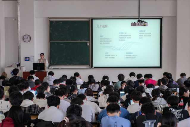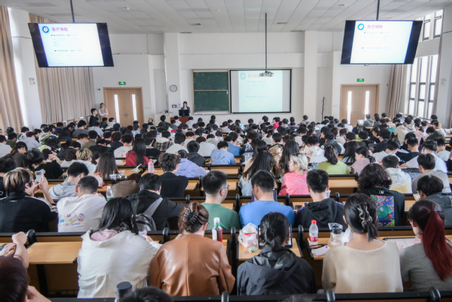 2022级在奉贤校区D200召开学业和职业规划动员大会。2022级辅导员王新林与学院就业指导陈新莲分别就学业和就业问题向同学们进行了宣讲。