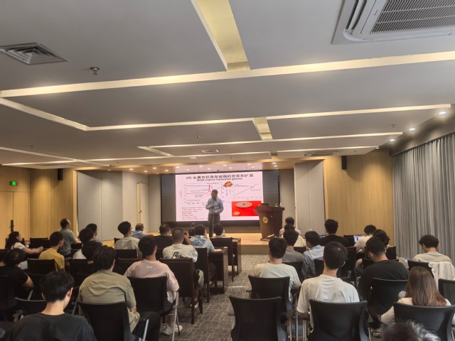 报告会上,岳远征院士结合自身的“玻璃之路”科研历程,分享了科研初心、学术体悟与重要经验,并重点介绍了团队在玻璃材料领域取得的系统性成果。报告内容系统展示了从超快速冷却、MYEGA模型到玻璃结构、热力学与动力学行为研究的完整理论体系,金属有机框架玻璃、超绝热泡沫玻璃以及全玻璃电池等前沿应用的关键突破,展现出从基础研究到产业转化的完整创新链条,为深入理解玻璃材料的微观构效关系及其在绿色能源领域的应用奠定了坚实基础。会上也分享了培养学生的使命和乐趣、调动学生积极性的案例,鼓励学生要站在高处,望着远方,加强语言学习,保持好奇与执着。