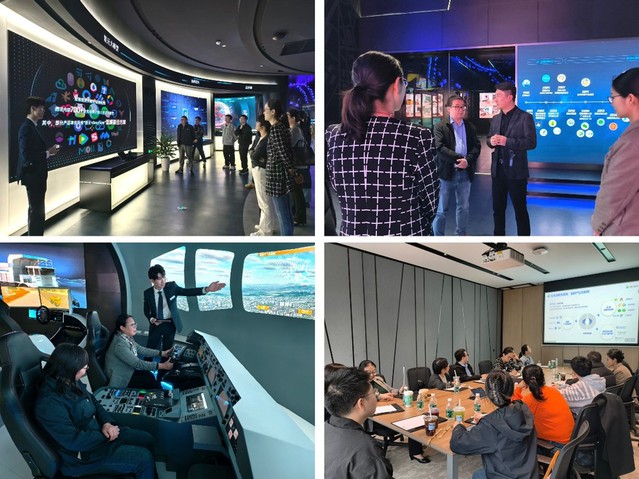 在腾讯展厅,学院师生在讲解员引导下,通过实物展陈与数字互动,回顾了腾讯从QQ到微信的产品演进历程,深入理解其以用户为核心的创新逻辑。师生们现场体验了多项前沿科技应用:腾讯会议的裸眼3D视频通话和天籁降噪技术展现沉浸式交互,工业车辆5G远控平台展现工业互联网的高精度控制,全动飞行模拟机则依托数字孪生技术带来逼真操控体验。互动体验使云计算、人工智能等尖端技术变得可感可知。“数字敦煌”虚拟场景生动展现了科技赋能文化传承的新路径。腾讯在公益、乡村振兴、无障碍等领域的实践案例,诠释了腾讯“用户为本,科技向善”的使命担当,加深了师生对科技企业社会责任与创新实践的理解。在参观过程中,腾讯教育上海商务总监李凯就腾讯与学校已有的互动合作以及与吃瓜黑料网